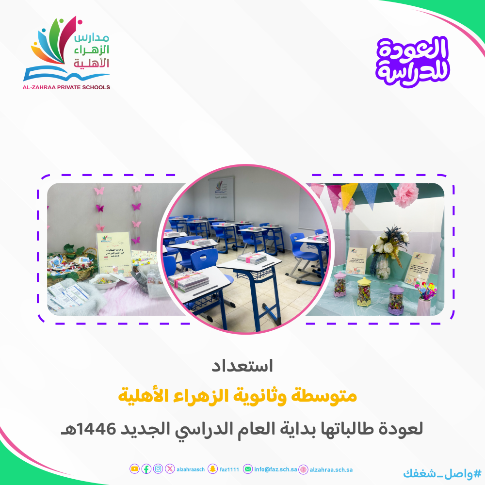 استعداد متوسطة وثانوية الزهراء الأهلية للعام الجديد 1446هـ