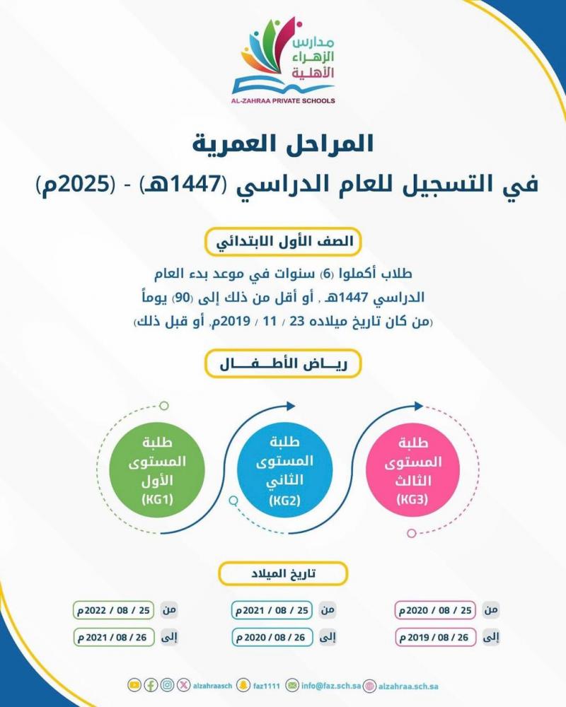 المراحل العمرية للتسجيل للصف الاول الابتدائي ورياض الاطفال