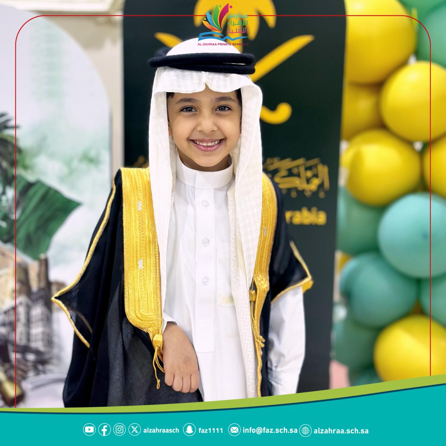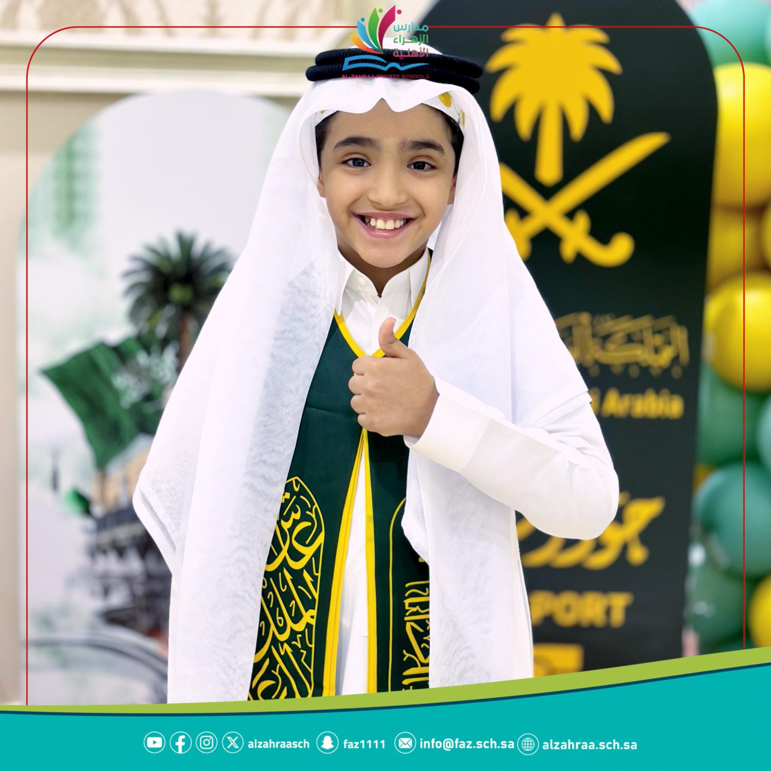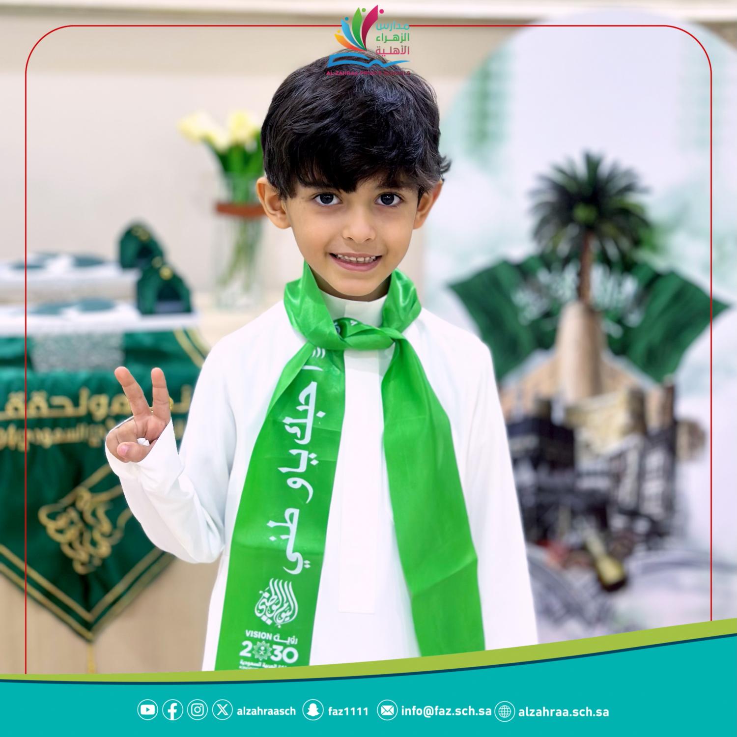 الاحتفال باليوم الوطني السعودي ٩٣ تحت عنوان ( رسالة للوطن ) طلاب الصف الرابع الابتدائي بنين